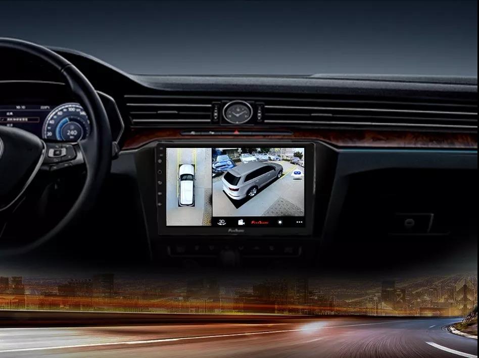 飛歌GT1 3D版全景導(dǎo)航一體機(jī)開機(jī)360°立體環(huán)視一周,通過(guò)前/后/左/右攝像頭形成全景畫面顯示在中控大屏上,以便我們可以直觀地查看車輛所處位置周圍的情況,提前排除車主盲區(qū)的危險(xiǎn)。