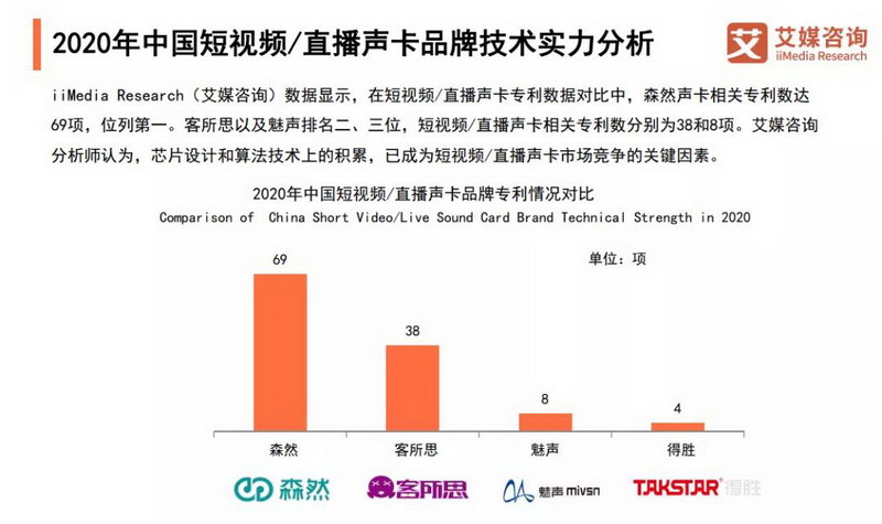 數(shù)據(jù)表明,與行業(yè)內(nèi)其他品牌相比,森然聲卡相關(guān)專利數(shù)多達69項。