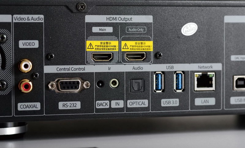 背板提供豐富的連接端子,甚至有單獨的XLR平衡和RCA非平衡音頻輸出,發(fā)燒態(tài)度可見一斑