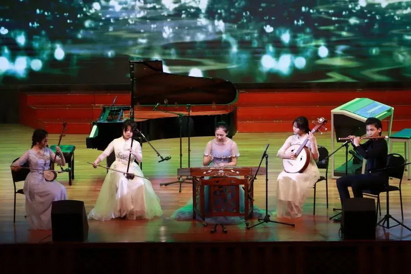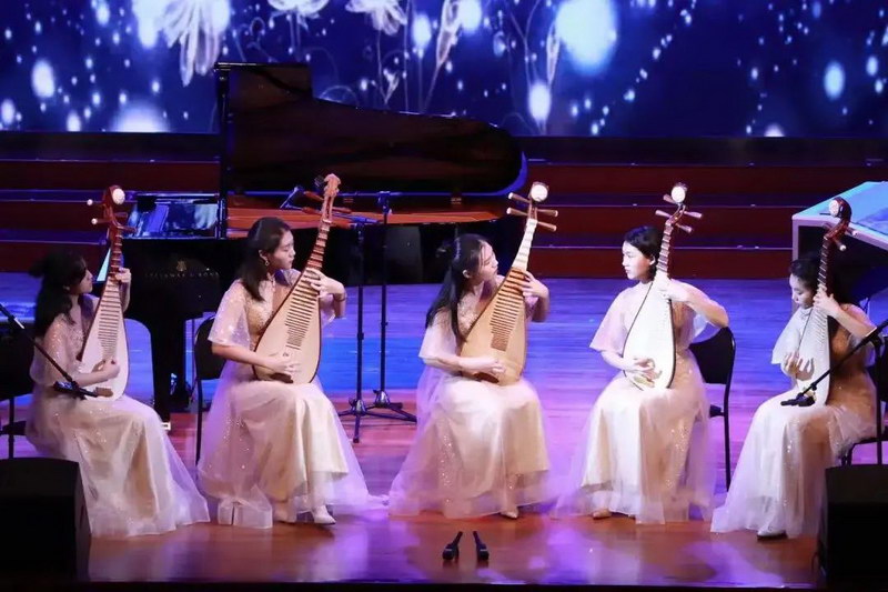 晚會的節(jié)目編排上有竹笛重奏、琵琶重奏、古箏獨奏、小提琴獨奏、廣東音樂五架頭、鋼琴獨奏、美聲獨唱、雙排鍵獨奏等。