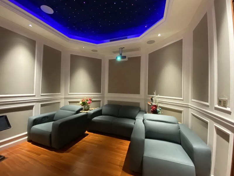 影院的立體環(huán)繞聲,拋開所有的喧鬧煩惱,讓聲音溫暖內(nèi)心深處,再搭配科幻的星空燈和藍色燈帶氛圍,增添一份神秘感。