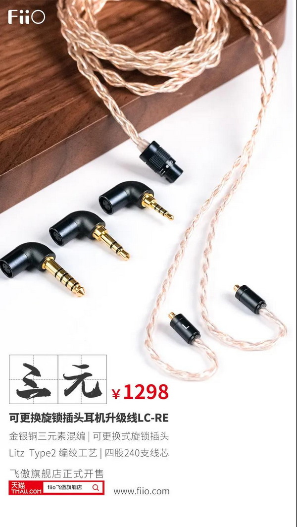 另外,三元還是飛傲首次采用旋鎖結(jié)構(gòu)可拆換插頭的線材,插頭內(nèi)置四極鍍金拆換插針,接觸阻抗小,損耗低;標(biāo)配3.5單端/2.5平衡/4.4平衡三款插頭,購買一條線,等于擁有三條高端耳機線!