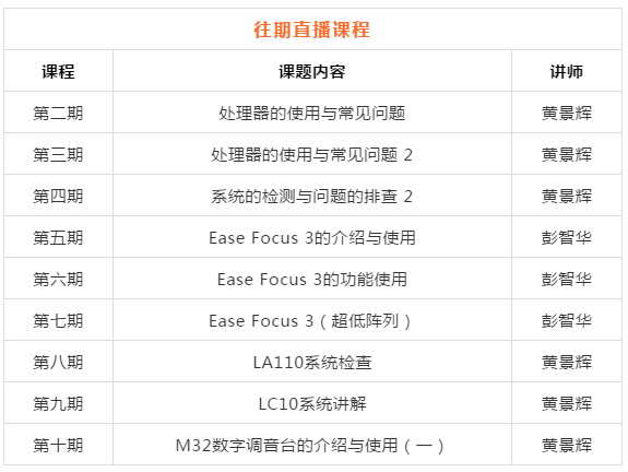 但建議M32調(diào)音臺(tái)先別急著收回去哦,聲揚(yáng)未來四期直播課程預(yù)告超前放送啦!課題內(nèi)容全圍繞著M32數(shù)字調(diào)音臺(tái),快快設(shè)定鬧鐘,準(zhǔn)時(shí)來學(xué)習(xí)!
