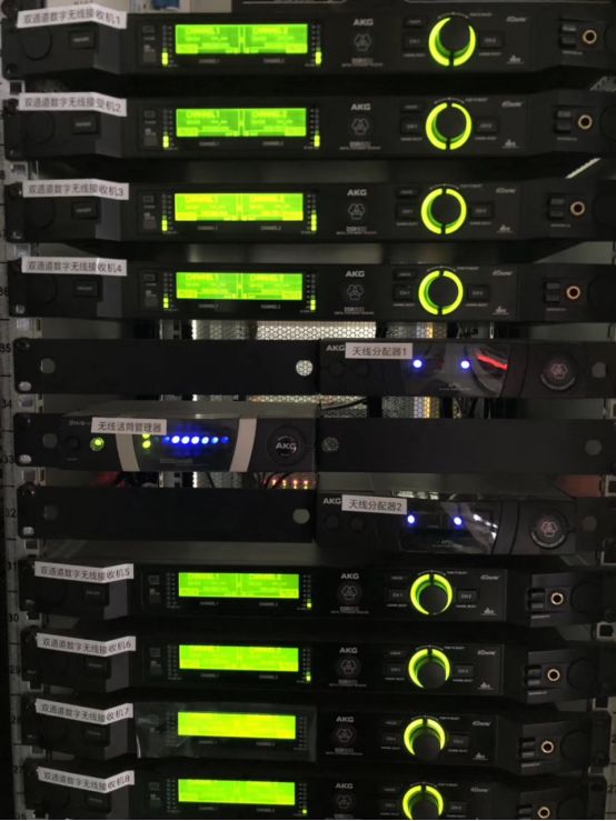 演藝廳舞臺左右兩側(cè)吊掛了各6只VERA10線陣列覆蓋觀眾席,M15全頻音箱做下拉聲像揚(yáng)聲器,B30超低音在舞臺下的預(yù)留孔洞中,臺唇位置設(shè)置了4只緊湊型的C5同軸揚(yáng)聲器覆蓋前三排觀眾,4只M12多功能揚(yáng)聲器作為舞臺流動返送,全部的音箱都由系統(tǒng)功率放大器PLM12K44驅(qū)動,PLM12K44是一款4通道可遠(yuǎn)程監(jiān)控的DSP功率放大器,內(nèi)置TWAUDiO的揚(yáng)聲器預(yù)設(shè),便于使用者對揚(yáng)聲器進(jìn)行操控管理。演藝廳的擴(kuò)聲系統(tǒng)還使用了16個(gè)通道的AKG DMS800數(shù)字無線系統(tǒng)。