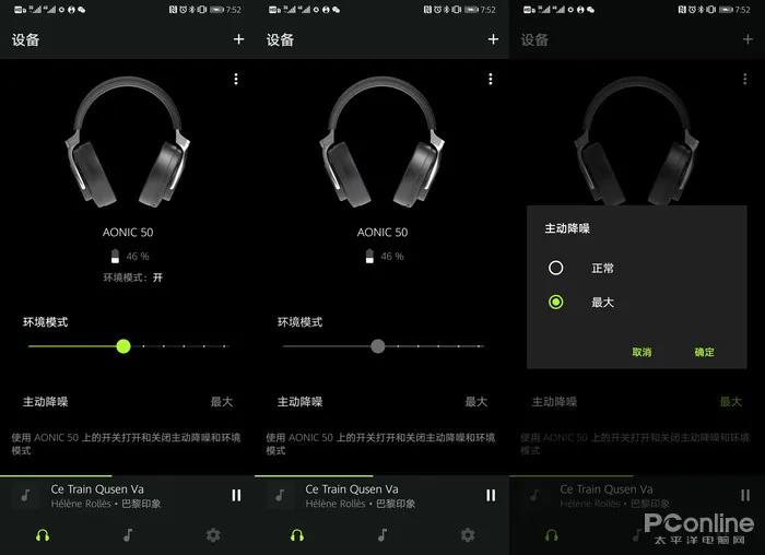 支持11檔調(diào)節(jié)的環(huán)境音模式也是一個(gè)相當(dāng)實(shí)用的功能,跟某些產(chǎn)品的環(huán)境音模式只是關(guān)掉降噪不同,AONIC 50的環(huán)境音模式在調(diào)節(jié)到3檔以上,即可感受到明顯的聲音放大效果;放大到最高11檔的情況下甚至能聽清楚數(shù)米開外的細(xì)微聲音(東西跌落、小聲對話、筆記本鍵盤敲擊聲)。