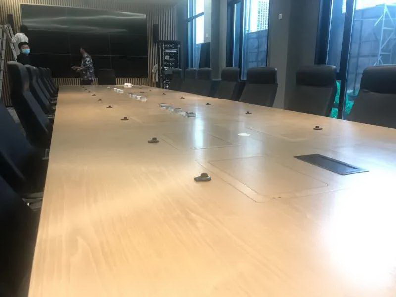 會議桌有升降式觸摸屏,既要配合好無紙化,話筒拾音必須達到最佳效果,無雜音。