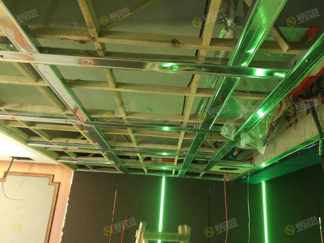 項目施工過程,主要包含了對聲學(xué)空間的裝修,以及智能模塊的加入,聲學(xué)空間細致化分為:原始結(jié)構(gòu)處理,聲學(xué)結(jié)構(gòu)處理,聲學(xué)飾面處理,天花星空頂設(shè)計、木工工程設(shè)計、電工類的安裝及布置等。