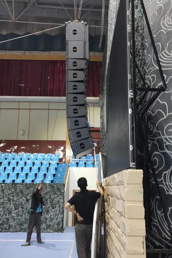 同時,工程人員根據(jù)吉林長春航空學院體育館的實際環(huán)境放置音響設備,供聲聲場均勻,無音染,聲音的豐滿度和感染力極好,保證了擴聲質量,其指向性更是無論是坐在前排還是后排的聽眾都能賞心悅目。