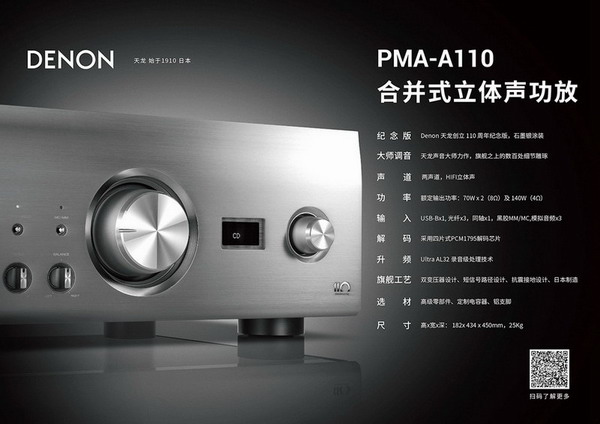 2020年,正是 DENON公司成立110周年。為了慶祝這一特殊歷史時刻,DENON公司在“音傳世界110年”新品發(fā)布會上,正式推出天龍110周年紀(jì)念版系列:AVC-A110家庭影院功放、DCD-A110播放機、PMA-A110合并式放大器、DL-A110唱頭。