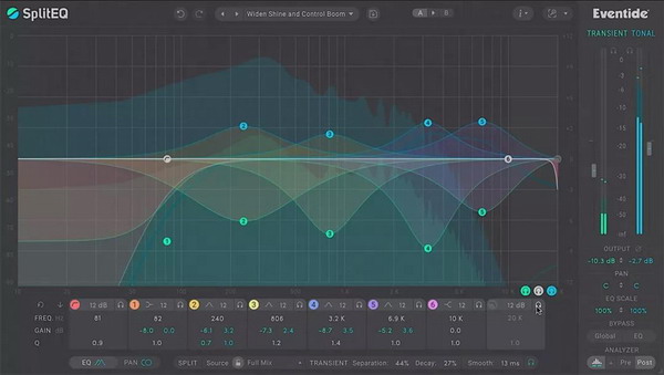 使用Eventide專利的Structural SplitTM技術(shù)將聲音的瞬態(tài)和音調(diào)部分分開均衡