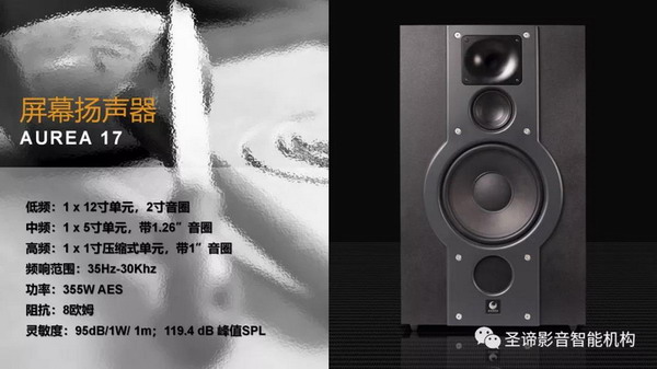 在前置3個聲道上使用AUREA 17,其具有Hi-End級別的聲音品質(zhì)和平坦的響應,90ºx40º喇叭帶來溫暖的音色和接近完美分布的頻率響應。