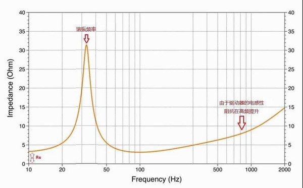 制造商標注的是標稱阻抗,標稱阻抗指的是阻抗的平均值。這張圖中,標稱阻抗為4Ω,僅比Re略高。