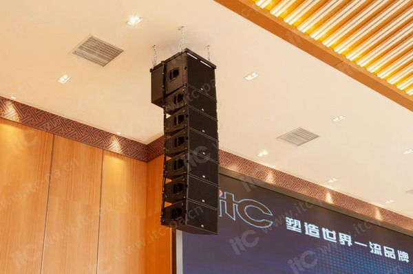 擴(kuò)聲系統(tǒng)的聲場環(huán)境很重要,一般有擴(kuò)聲的場所,特別是會議場所,我們建議,一定要做建聲裝修,比如,會場的墻面需要做吸音板,內(nèi)置阻燃吸音棉,一般取50mm-100mm厚度的吸音棉,外置穿孔吸音板,這就是典型的“兩夾一芯”聲學(xué)裝修方法。以有12米高d廳堂為例,建議吊裝空間吸音體。否則,大部分回聲將在空中“盤旋”。而其他有窗戶、玻璃的位置需要懸掛阻燃材料的厚絨布窗簾,地面鋪地毯,并且天花頂部盡量不做燈槽(容易產(chǎn)生駐波),若必須做燈槽,應(yīng)使用粗糙的表面漆進(jìn)行噴涂。其他裝修面材料建議使用可吸音材質(zhì)。
