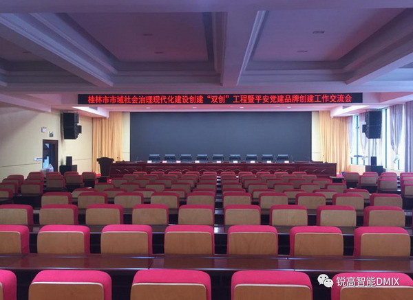 廣西桂林某信訪局會議室,采用了銳高智能DMIX品牌音箱、功放、會議話筒、處理器等擴聲系統(tǒng)設(shè)備。