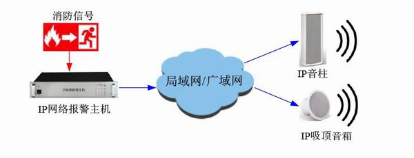IP廣播系統(tǒng)能夠與消防系統(tǒng)聯(lián)動(dòng)(報(bào)警信號(hào)通過IP報(bào)警主機(jī)接入),平時(shí)播放音樂,當(dāng)有緊急廣播要求時(shí),系統(tǒng)立即強(qiáng)制切換為緊急廣播狀態(tài),對(duì)所需要廣播的區(qū)域進(jìn)行緊急廣播;同時(shí)系統(tǒng)具有報(bào)警聯(lián)動(dòng)功能,當(dāng)有報(bào)警時(shí),會(huì)自動(dòng)將本地警情通知各控制網(wǎng)點(diǎn),同時(shí)根據(jù)警情影響的范圍、危害的大小自動(dòng)對(duì)所屬區(qū)域和影響區(qū)域進(jìn)行報(bào)警,提高人群疏散的效率和降低損失的程度。