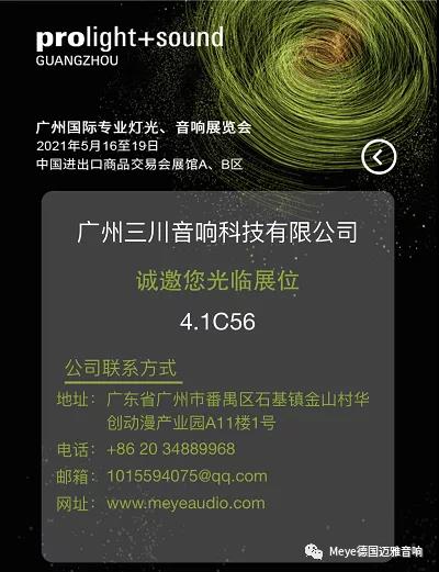 屆時,第十九屆廣州國際專業(yè)燈光、音響展覽會正在火熱進行中,Meye德國邁雅音響人氣爆棚,展位上人潮涌動,絡繹不絕,無數(shù)觀眾駐足聆聽,品鑒Meye好聲音。