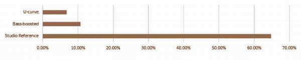 Sonarworks當(dāng)然歡迎用戶按需使用SoundID Reference進(jìn)行監(jiān)聽校準(zhǔn)。下圖的小調(diào)查表明,大約2/3的用戶更喜歡使用軟件建議的工作室參考目標(biāo)曲線 (SR),我們的 SoundID Reference 目標(biāo)旨在確保細(xì)節(jié)和無音染的監(jiān)聽;同時,一部分用戶則選擇了與平坦略有不同的頻率響應(yīng)。除了平坦之外,其他因素對某些制作人來說更有意義,這樣的情況SoundID Reference當(dāng)然可以滿足。