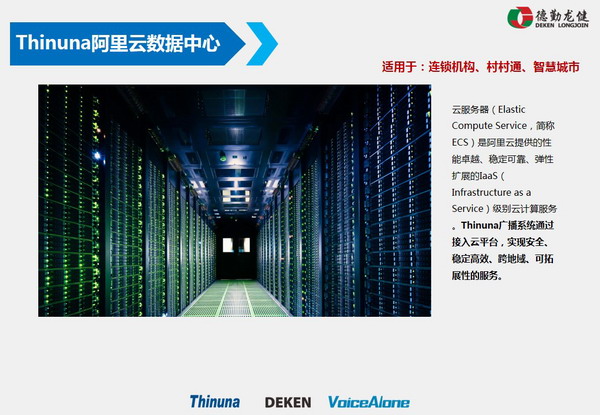 基于IP網(wǎng)絡(luò)通信協(xié)議和數(shù)字音頻技術(shù),依托阿里云數(shù)據(jù)中心,Thinuna(聲優(yōu)諾)云廣播面世。本系統(tǒng)解決了傳統(tǒng)廣播繁瑣的布線和傳輸距離近的問題,同時也解決了一般IP網(wǎng)絡(luò)廣播的大范圍布線的難題,更解決了地理環(huán)境限制問題。