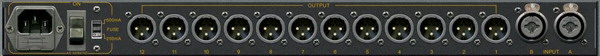 高集成度的HB-DA6EX,具有2路卡農(nóng)及6.3mm兼容的平衡輸入及12路電子平衡輸出。每路輸出可個別由前面板上的肘節(jié)開關(guān)設(shè)定為接收A通道或B通道的信號輸入,或設(shè)定為A和B信號混合的單聲道信號。