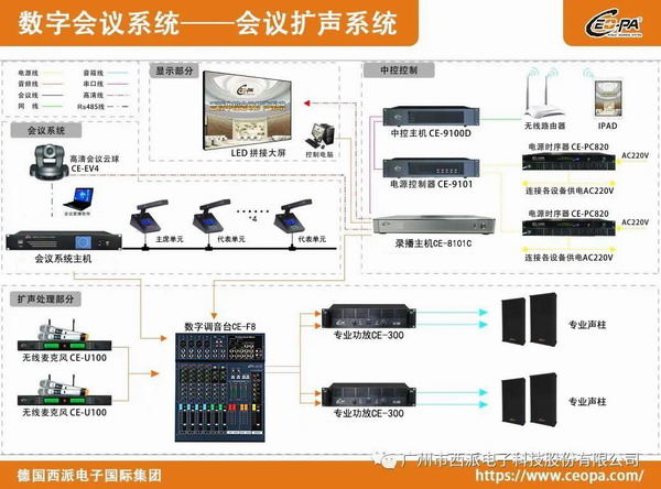 數字音視頻系統(tǒng)根據多媒體會議室的面積和使用功能,參考國家擴聲標準進行設計,音響擴聲系統(tǒng)主要由揚聲器、功率放大器、音頻處理設備、調音臺、話筒、音源等設備組成。整個系統(tǒng)選用同類產品中音色優(yōu)美的高檔次音響器材為主組成音響系統(tǒng),選用同類產品中技術最成熟、性能先進、使用可靠的產品型號。