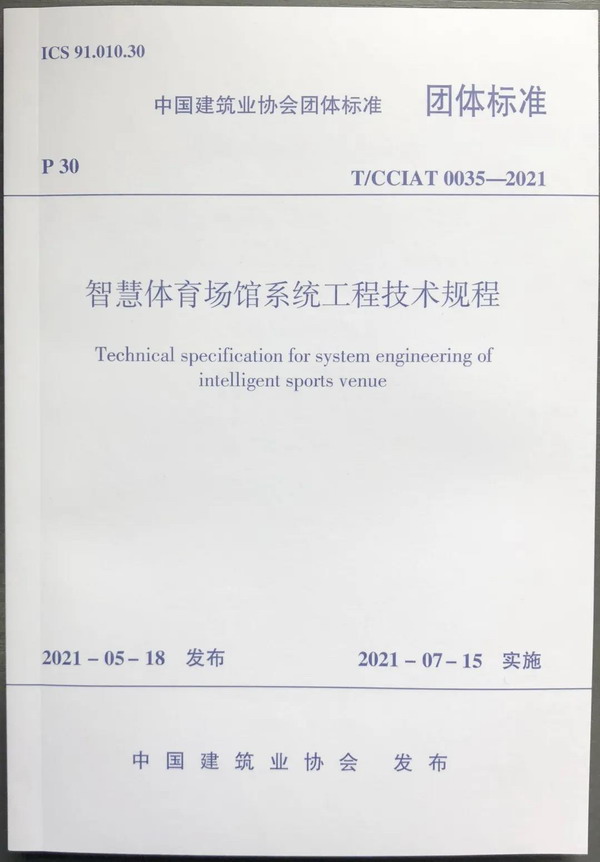 中國(guó)建筑業(yè)協(xié)會(huì)于2021年5月18日發(fā)布公告,由中國(guó)建筑標(biāo)準(zhǔn)設(shè)計(jì)研究院有限公司與中智華體(北京)科技股份有限公司主編,眾多知名設(shè)計(jì)院和同方股份、華為技術(shù)、迪斯聲學(xué)、洲明科技等企業(yè)參與編寫(xiě)的《智慧體育場(chǎng)館系統(tǒng)工程技術(shù)規(guī)程》發(fā)布(以下簡(jiǎn)稱《規(guī)程》),并于2021年7月15日正式實(shí)施。