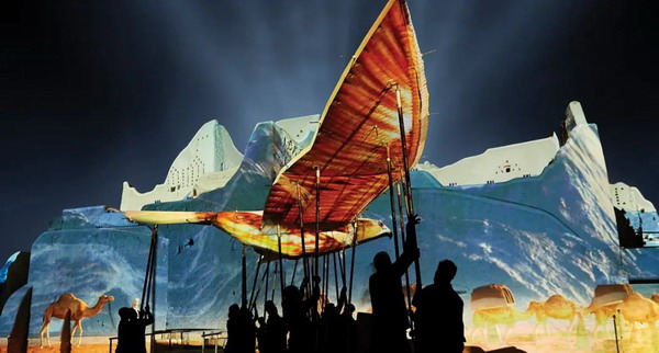 獵鷹有極其重要的象征意義,因此需要以一種真正富有想象力的方式來表現(xiàn)它。為了實現(xiàn)這一場景,一個巨大的碳纖維、移動投影映射的“獵鷹”誕生了,同時也被確定為故事情節(jié)的中心角色。