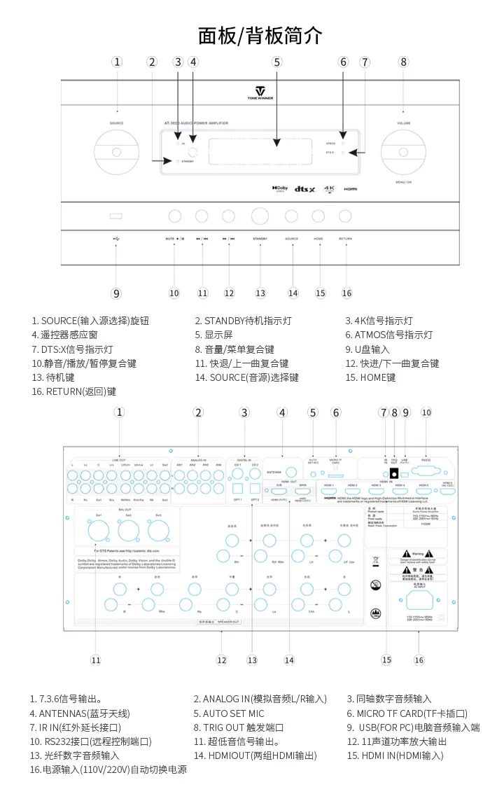 早幾年前,天逸的家庭影院功放產(chǎn)品就已經(jīng)全數(shù)更新至支持杜比全景聲和DTS:X沉浸式音效雙解碼的全景聲時(shí)代。從多功能、高性價(jià)比角度出發(fā)而研發(fā)生產(chǎn)的AT-2300、AT-2180等影K功放當(dāng)前仍在全球影音市場(chǎng)占據(jù)一席之地,而近期新推出的AT-3000旗艦級(jí)影院功放,更是天逸在全景聲平臺(tái)更深入的開拓與進(jìn)步的最佳體現(xiàn)。