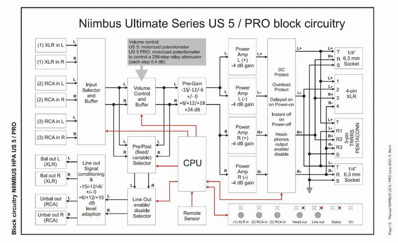 Niimbus旗艦系列共有兩個(gè)型號(hào),分別為US 5與US 5 PRO,差別在於後者多了更精準(zhǔn)更好高達(dá)256階的音控(0.4dB/階),使用沒有鐵芯磁簧繼電器(reed relay),反應(yīng)快速,且比傳統(tǒng)繼電器的接觸抖動(dòng)小。Niimbus US 5 PRO是Niimbus US 4+的新一代型號(hào),其以強(qiáng)大高品質(zhì)的推力、低噪訊的耳擴(kuò)線路聞名,可驅(qū)動(dòng)許多難對(duì)付的High End耳機(jī),除了耳擴(kuò)之外,其也是一部真正的類比前級(jí),可與後級(jí)與主動(dòng)式喇叭搭配。