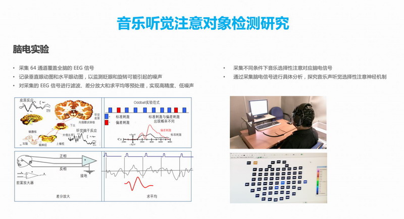 在進行理論研究的同時,也積極與南方科技大學電子與電氣工程系合作展開腦電實驗,通過其實驗室設備采集不同條件下音樂選擇性注意對應腦電信號,進行具體分析,探究音樂聲聽覺選擇性注意神經(jīng)機制。