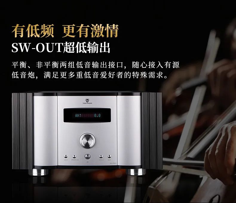 4、支持平衡和非平衡兩組SW超低音輸出接口,可接駁有源低音炮,滿足發(fā)燒友們對超低頻的需要。