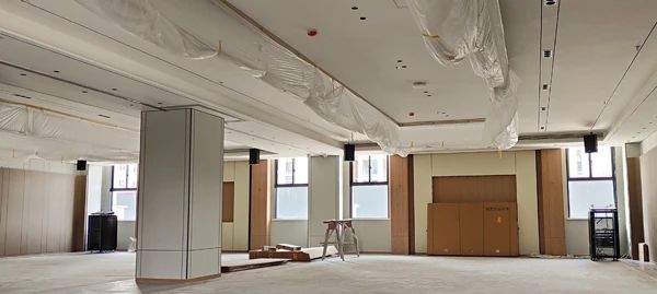 》針對每塊供聲區(qū)域的聲反射特性,采用適當?shù)墓β释苿樱捎行p少不良反射聲的干擾。》在宴會廳內(nèi)使用多種揚聲器組合,通過不同揚聲器相互疊加和覆蓋,當享會廳內(nèi)進行會議或活動時,聲音各頻度均能得到良好的體現(xiàn),加大音樂的表現(xiàn)力。