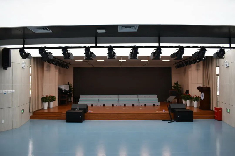 BGM為上海市復(fù)旦大學(xué)附屬徐匯實(shí)驗(yàn)學(xué)校提供了“會(huì)議中控?cái)U(kuò)聲系統(tǒng)、舞臺(tái)機(jī)械燈光系統(tǒng)”,滿足了其數(shù)字發(fā)言、視頻顯示、專業(yè)擴(kuò)聲、信號(hào)處理、集中控制、機(jī)械幕布、舞臺(tái)燈光等功能需求。