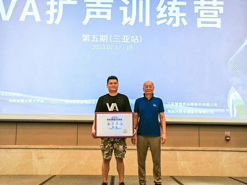 在課程尾聲,海南省舞臺(tái)美術(shù)學(xué)會(huì)現(xiàn)場(chǎng)為本次活動(dòng)的主辦與協(xié)辦單位頒發(fā)會(huì)員單位牌匾。授予廣州市合和音響實(shí)業(yè)有限公司會(huì)員單位。為三亞愛維思會(huì)展服務(wù)有限公司總經(jīng)理馮積標(biāo)先生頒發(fā)副會(huì)長(zhǎng)聘書;為三亞隴之緣文化傳媒有限公司總經(jīng)理吳振榮先生頒發(fā)副會(huì)長(zhǎng)聘書。恭賀上述公司獲得學(xué)會(huì)會(huì)員單位資格。相信在海南省舞臺(tái)美術(shù)學(xué)會(huì)的大力支持與指導(dǎo)下,三家單位將會(huì)更好的發(fā)揮其在當(dāng)?shù)匮莩鲂袠I(yè)中的優(yōu)勢(shì)和特色,持續(xù)提升自身實(shí)力深化優(yōu)質(zhì)服務(wù),為促進(jìn)海南省演出行業(yè)高質(zhì)量發(fā)展做出積極貢獻(xiàn)。