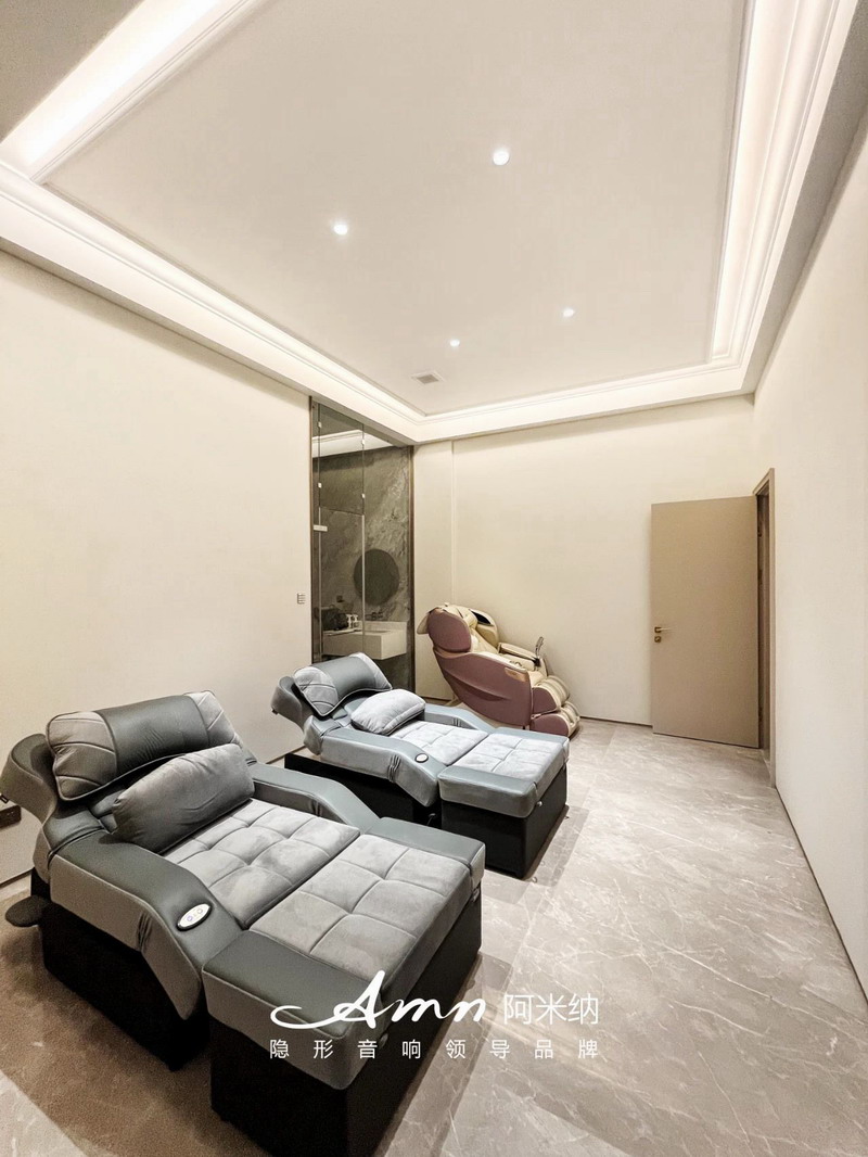 本次阿米納音響工程師根據(jù)空間大小,屬性,以及客戶預(yù)算和喜好,客廳搭配了5.1聲道家庭影院,和全屋的背景音樂系統(tǒng)。