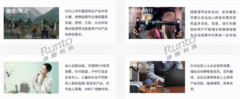 運動場景中,跑步、健身等場景仍是藍牙耳機的適配性較高,但隨著騎行和摩旅的用戶不斷增加,車載藍牙音箱的市場仍具有潛力,有待開發(fā)。