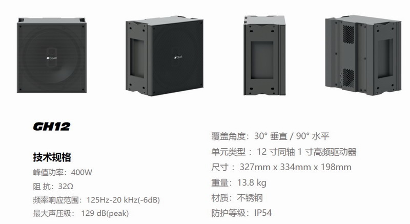 GH12 緊湊的外觀(guān)設(shè)計(jì)做到了同尺寸單元揚(yáng)聲器中最小的體積,安裝不僅美觀(guān),融于環(huán)境;同時(shí)小體積帶來(lái)的輕量化特點(diǎn)能降低對(duì)于吊裝位置承重的需求。例如,與現(xiàn)場(chǎng)古建筑的結(jié)合,可以減少吊裝結(jié)構(gòu)改善成本,也更加安全。