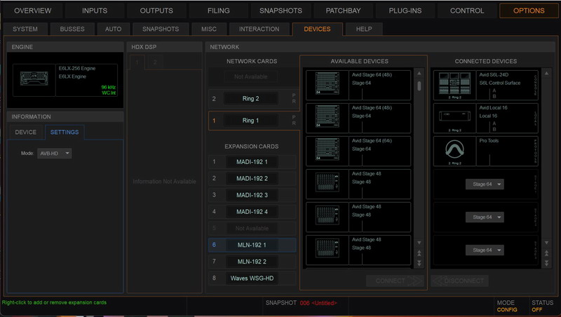 除了對E6LX-256 的支持,我們還添加了大量新特性,為所有VENUE用戶拓展了功能,首先是虛擬聲音檢查(Virtual Soundcheck)功能。現(xiàn)在,你可以將系統(tǒng)中多達四塊MADI-192擴展卡都分配給虛擬聲音檢查功能使用,在96kHz采樣率下實現(xiàn)256ch×256ch通道輸出,以涵蓋所有的物理輸入及更多內(nèi)容。通過將你的MLN-192擴展卡進行VENUE 8.0固件更新,你可以將該擴展卡設置為AVB-HD模式。這樣一來,更新后的MLN-192擴展卡能讓你在96kHz采樣率下,通過一根以太網(wǎng)電纜向支持的電腦實現(xiàn)多達216ch×216ch的 AVB錄音。